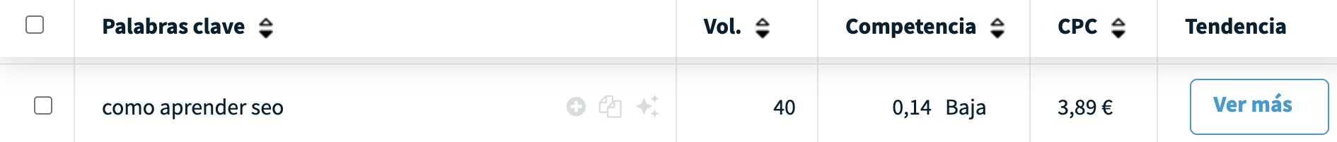 Búsquedas de la keyword «cómo aprender SEO» en DinoRANK